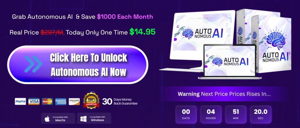 Autonomous AI is not just a tool β it is an automatic AI assistant, marketing engine and business growth system, which will free you from the burden of time, cost and labor. Incorporate it into your business today and leave your competitors behind with the power of AI.